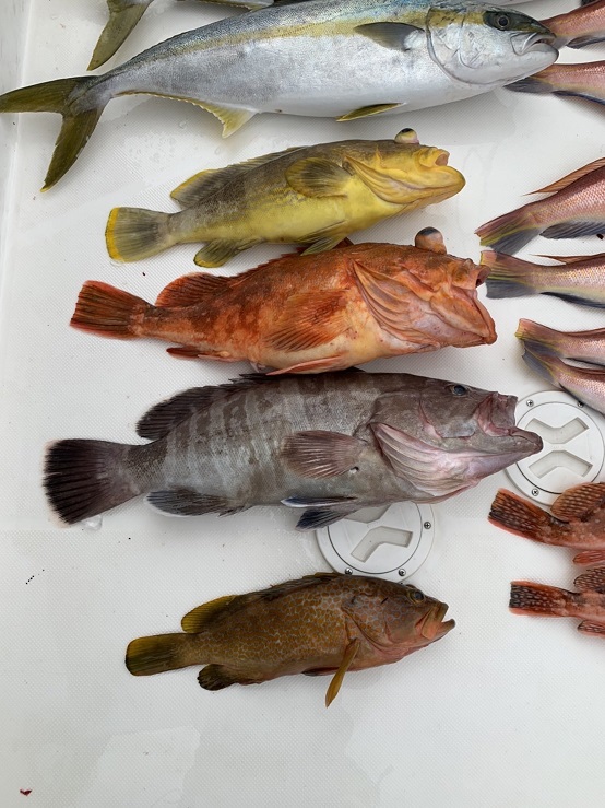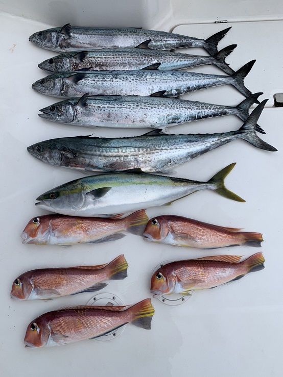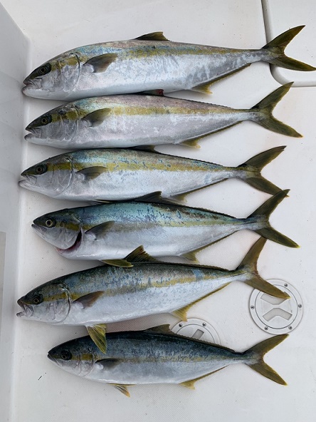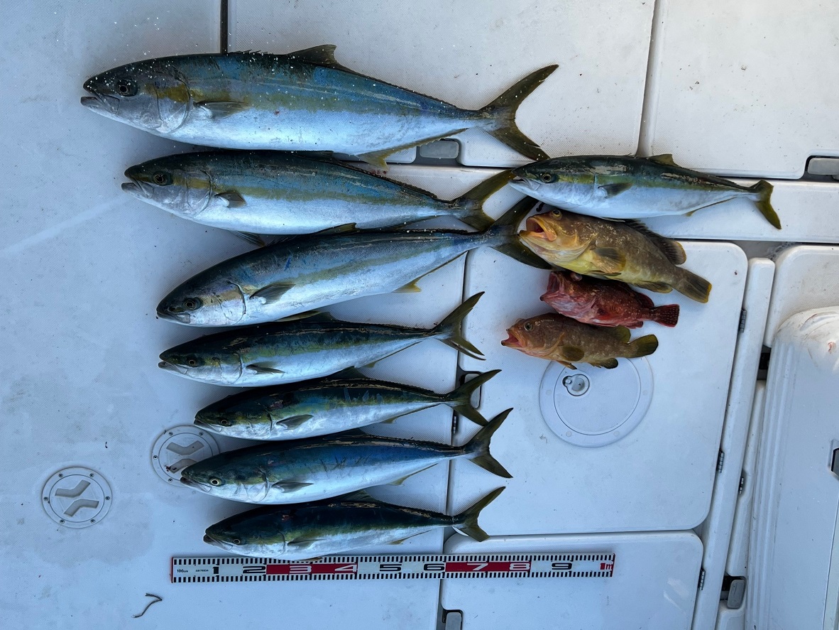 令和5年1月8日 ヒラマサ・ヤズ・アオナ・カサゴ 令和4年6月19日 クエ 13㎏ 令和4年5月22日 ケンサキイカ 令和4年4月17日 ヤズ/カサゴ/アコウ 令和4年1月30日 見島沖周辺 ヤズ/ヒラゴ/サワラ/アマダイ/カサゴ/マハタ 令和4年1月23日 見島沖 五目釣り アオナ/カサゴ/アマダイ 令和4年1月9日 サワラ/アマダイ 令和3年12月25日 見島周辺 ヒラマサ 令和3年12月5日 汐巻 ヒラマサ/ヒラゴ/ヤズ 令和3年11月21日 見島沖 スマガツオ/ ハガツオ/メジ